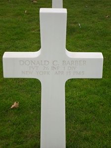 Pvt Donald C. Barber graduated from Central High School and was employed at Ansco and was a frequent prize-winner for improvement suggestions at the film plant.He enlisted in Binghamton, New York on 26 November 1943.