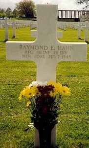 Pfc Raymond E. Hahn enlisted in Camp Upton Yaphank, New York on 4 April 1944.First buried at Block MMM, Row 10, Grave 183.