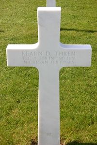 T/4 Kearn D. Threm attended four years of high school and was employed as a meat cutter for Goodwill Meat Market before he enlisted at Fort Custer, Michigan on 12 January 1942 and went overseas September 1944.Source of information: Astrid van Erp, Carla Mans, Susan Linton - The Pontiac Weekly Newspaper 22 February 1945, www.wwiimemorial.com, www.fold3.com, www.ancestry.com - U.S. WWII Draft Cards Young Men / WWII Enlistment Record