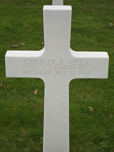 Charles Vella landed with the 2nd Ranger Battalion on D-Day.He was wounded in action in December 1944, for which he was awarded the Purple Heart Medal for the first time.