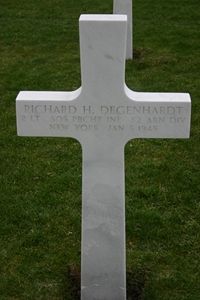 Richard Degenhardt attended college and worked at the sales office of the Crucible Steel Company.He enlisted in Syracuse, New York on 19 November 1942 and received his commission at Fort Benning, Georgia. In July 1943. He volunteered as a paratrooper and received his wings in September 1943.