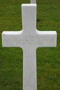 Pvt Louis Di Giralamo enlisted in San Antonio, Texas on 2 April 1942.On the left flank of 505, the 3rd Battalion moved out toward its initial objective, the hamlet of Fosse. I Company was assigned to capture Fosse with supporting fire from H Company on the right, G Company moved behind them in reserve. As I Company made its way through the deep snow to the initial point, almost immediately men were hit. During this action, Pvt Di Giralamo was killed instantly.