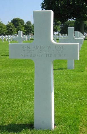 Benjamin Deal attended Collingswood High School.He was ordered to lead a four-man patrol to make a reconnaissance of forward enemy positions. when the men approached the enemy lines, they were pinned down by concentrated mortar fire. Two of the men were killed instantly and only one managed to make it back to the American lines. The lone survivor, suffering from frozen feet after 36 hours away from his lines, reported Dyl was among those captured by the Germans.