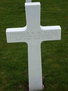 Frederick McManus graduated from James Madison High School and was a printer.On the way to the target, the airplane was attacked by an enemy fighter over Belgium and had to break away from theformation and became separated from the rest of the group.