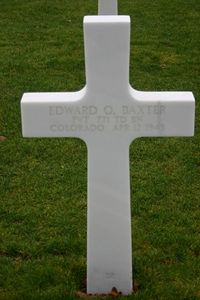Edward Baxter attended high school for one year and was a chauffeur before he enlisted in Denver, Colorado on 10 August 1943.The exact date on which Pvt Baxter was reported injured and the location where he died is not known. At the time of his death, his unit was involved in the fighting east of Hannover, Germany.