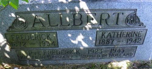 Pvt Allbert is remembered on a memorial stone at East Trumbull Cemetery in East Trumbull, Ashtabula County, Ohio.Source of information: Peter Schouteten, www.ancestry.com - World War II Draft Cards Young Men, 1940-1947, WWIIMemorial.com, www.archives.gov, Richard Bell (second cousin)