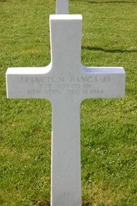 Frank Bangs was the only brother of Whitney Waldo Bangs, '43, who died as a prisoner of war in Germany, March 5, 1945. He is buried next to him at Plot H, Row 15, Grave 45.