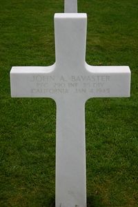 Pfc John A. Bavaster was first buried at the Temporary American Military Cemetery of Fosse, Belgium.Source of information: Peter Schouteten, Terry Hirsch, www.wwiimemorial.com, www.archives.gov, www.ancestry.com - U.S.,