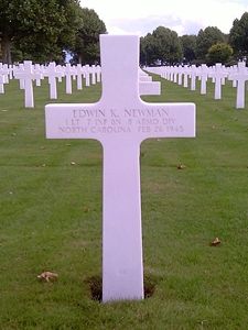 1st Lt Edwin K. Newman was born in Franklin and spent his early boyhood days there. He moved to Winston-Salem with his parents, and graduated from Reynolds High School in 1935. Following his graduation from Citadel (Military College) Charleston, South Carolina in 1939, from which he received his commission, he was an instructor at Fort Benning in Georgia. He entered the armed forces on 4 January 1942.At the Citadel he majored in Business Administration and where he acquired the nickname 'Benny'.