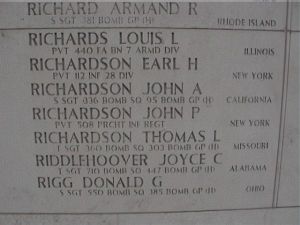 T/Sgt Riddlehoover is remembered at Eastaboga Baptist Church Cemetery in Old Eastaboga, Talladega County, Alabama, with a memorial marker.