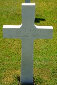 Pfc Paul E. Adams graduated from Boswell High School in 1942 and was employed by the National Radiator Company in Johnstown before he enlisted in Altoona, Pennsylvania on 26 January 1943.He was married to Sue Shaffer on 25 January 1943.