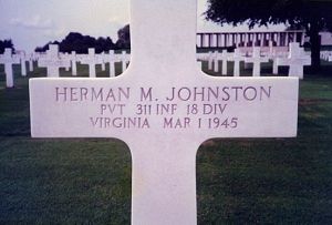 Pvt Herman M. Johnston was first buried at Block YYY, Row 5, Grave 98.Source of information: Astrid van Erp, Peter Schouteten, www.wwiimemorial.com, www.findagrave.com, www.ancestry.com - Headstone and Interment Record