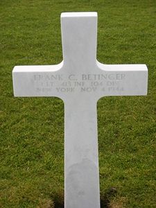 1st Lt Frank C. Betinger enlisted in Amsterdam, New York on 15 October 1940.Source of information: Raf Dyckmans, Astrid van Erp, Arjan van Hassel, Peter Schouteten, www.wwiimemorial.com, www.fold3.com, www.archives.gov - WWII Enlistment Record, www.ancestry.com - U.S., Headstone and Interment Records for U.S. Military Cemeteries on Foreign Soil