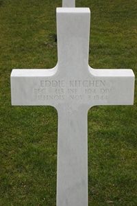 Pfc Eddie Kitchen was an architect before he enlisted in Chicago, Illinois on 28 January 1941 was later discharged and called to duty again.Source of information: Raf Dyckmans, Astrid van Erp, Arjan van Hassel, Peter Schouteten, www.wwiimemorial.com, www.fold3.com, www.archives.gov - WWII Enlistment Record, www.ancestry.com - Headstone and Interment Record, www.newspapers.com - The Decatur Daily Review