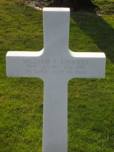 Pvt William F. Linville worked on a farm before he joined the Regular Army under the assumed name William P. Jones at Fort Benjamin Harrison, Indiana on 17 July 1940.Source of information: Raf Dyckmans, Peter Schouteten, www.wwiimemorial.com, www.fold3.com, www.ancestry.com - Headstone and Interment Record, www.archives.gov - WWII Enlistment Record