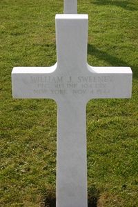 Pfc William J. Sweeney enlisted in New York City, New York on 5 August 1943.Source of information: Raf Dyckmans, Astrid van Erp, Arjan van Hassel, Peter Schouteten, Carla Mans, www.wwiimemorial.com, www.archives.gov - WWII Enlistment Record, www.ancestry.com - Headstone and Interment Record / U.S. WWII Draft Cards Young Men / Bryan Ewald Family Tree / 1930 Census