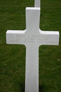Sgt James L. Raffaldt worked in a textile factory before he enlisted at Camp Croft, South Carolina.Source of information: Raf Dyckmans, Peter Schouteten, www.wwiimemorial.com, www.fold3.com, www.archives.gov - WWII Enlistment Record, www.ancestry.com - U.S., Headstone and Interment Records for U.S. Military Cemeteries on Foreign Soil / U.S. WWII Draft Cards Young Men / WWII Enlistment Record