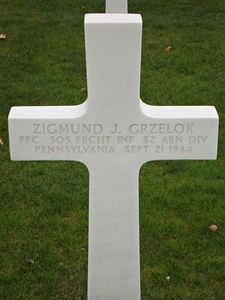 Pfc Zigmund J. Grzelok enlisted at Fort George G. Meade, Maryland on 19 August 1941.He was initially buried at the Temporary American Military Cemetery of Molenhoek, the Netherlands.
