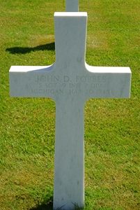 S/Sgt John D. Forbes enlisted in Detroit, Michigan on 6 June 1941. He was taken prisoner of war on 18 December 1944 and died in POW Camp Stalag 9 C/Z in Muhlausen, Germany. He was a chauffeur before he enlisted.Source of information: Astrid van Erp, Raf Dyckmans, Terry Hirsch, Carla Mans, www.wwiimemorial.com, www.archives.gov - WWII Army Enlistment Record / Records of WWII Prisoners of War, WWII Draft Card, 1940 US Census