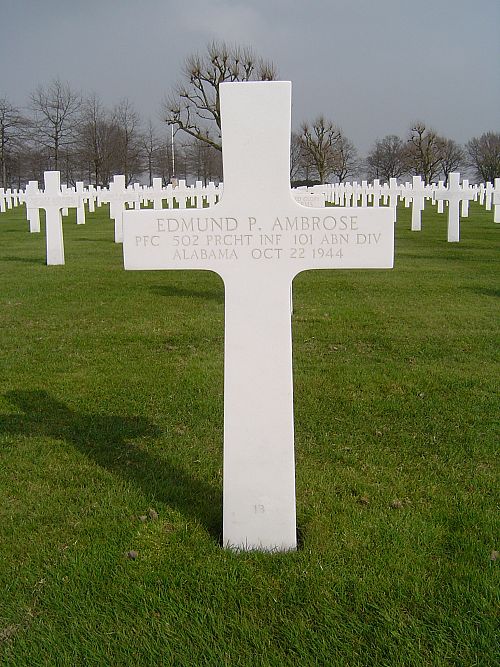 Pfc Edmund P. Ambrose attended high school for four years.He joined the National Guard in Selma, Alabama on 25 November 1940.