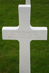 Pfc Peter Evancho was a miner before he enlisted at Wilkes Barre, Pennsylvania on 21 November 1942.He is buried next to his brother George.