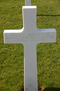 Pvt John C. Ballard Jr. attended high school for three years. He was employed by the Pettyjohn Construction Co.He enlisted in Richmond, Virginia on 29 June 1943.