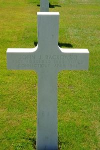 The grave of S/Sgt Backowski was marked with a grave marker with the inscription: 'Unbekannter Englisher Flieger'. His remains were identified at Ardennes by 15 corresponding laundry marks and by his tooth charts. At Ardennes, he was first buried at block X, row 12, grave 287. He was disinterred on 6 December 1948, and his remains were prepared and placed in a casket on 13 January 1949. He was given his final resting place in September 1949 (the exact date is unclear in the file).