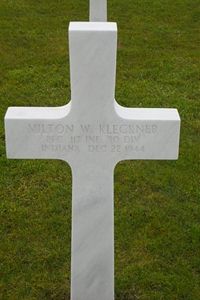 Milton Kleckner was the owner of Kleckner Shell Service Station in Plymouth, Marshall County, Indiana before enlisting on 28 March 1944.Source of information: Terry Hirsch, www.wwiimemorial.com, www.fold3.com, www.findagrave.com,