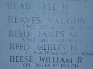 S/Sgt James M. Reed Redstone graduated from Township High School with the class of 1939 and was a minerHe volunteered for the U.S. Army in Pittsburgh, Pennsylvania on 22 July 1942.