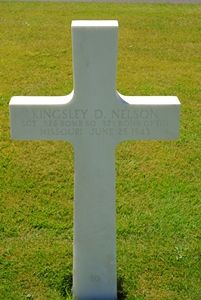 Sgt Kingsley D. Nelson graduated from Wathena High School and was a financial clerk with the Stock Yards Exchange Bank.He volunteered for the Army of the United States at Jefferson Barracks, Missouri on 7 August 1942.