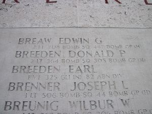 Lt Breeden was reported missing in action during the second raid on Schweinfurt on 14 October 1943 and was declared officially dead one day and one year later.