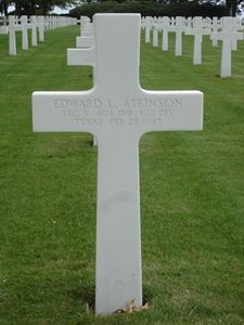 T/5 Edward L. Atkinson attended high school for 3 years and worked on a farm.He enlisted in Abilene, Texas on 28 November 1942 and trained at Camp Maxey and Camp Swift, Texas and at Fort Dix, New Jersey. He as sent overseas six months before his death.