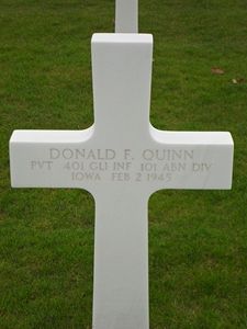 His brother, Robert L. Quinn, was killed in action in France on 6 July 1944 and is buried at the Normandy American Cemetery in Colleville-sur-Mer, France.