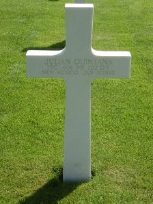 Pfc Julian Quintana enlisted in Santa Fe, New Mexico on 10 November 1942.He was awarded the Silver Star Medal postumously. The citation cited: In an assault on a fortified position, covered his wounded platoon leader with effective fire until evacuation could be accomplished. He was then, as a result of his bold action, mortally wounded.