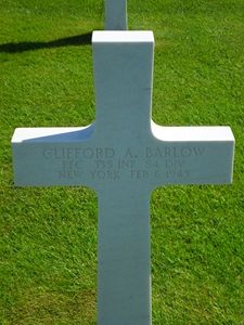 Pfc Clifford A. Barlow enlisted on 8 April 1944.He was wounded in action on 9 January 1945 when his unit was fighting in the vicinity of La Roche, Belgium. He suffered from multiple gun shot wounds and died in the 56th General Hospital in Liège.