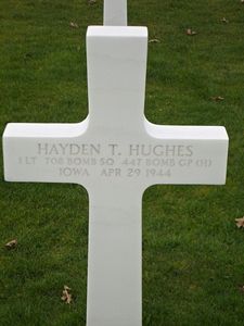 1st Lt Hayden T. Hughes attended college and was an actor.He volunteered for the Air Corps of the Army of the United States in Chicago, Illinois on 4 April 1942.