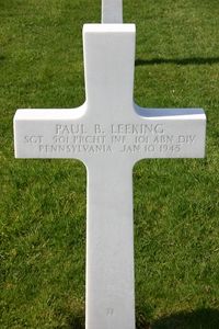 Paul Leeking graduated from Warwick Township High School in 1941 and worked in a garage.Sgt Leeking was reported seriously wounded in action on 22 September 1944 and was in a hospital in England for some time.