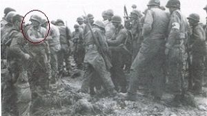 "Many men exhibited valor while defending the hill. Pfc Fred Dix, whose foot was mangled, hobbled to Platoon Sergeant Petty's location to tell him that Pfc Garness Colden was in desperate need of attention. Petty ran to the position and found Sgt. Murrell Stinnette had already arrived and was attempting to help Colden. Petty could see that Stinnette was himself seriously wounded, pale from loss of blood and bleeding from the mouth. Petty decided that he would take Stinnette to the bunker and return for Colden. Sergeant Stinnette insisted Colden should be the first to be treated. When Petty hesitated, Stinnette said with force that he had his hand on Colden's stomach. It was ripped by shrapnel, and Petty would take Colden first. Murrell Stinnette had served a hitch in the Navy and service on land and sea had given him a rich and aggressive vocubulary. Stinnette lashed Petty with curses, startling the platoon sergeant. Petty followed Stinnettes order, picking up Colden and carrying him to the bunker. Petty then made another run through shell fire to get back to Stinnette. The effort was in vain: Stinnette was dead, his body contorted from the agony of his final moments. Petty's grief was overwhelming and he took solace that Stinnette had sacrificed himself to save Colden."