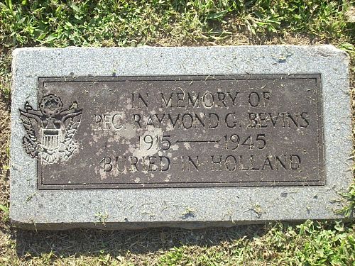 Killed in action in Germany on February 24, 1945 near Boslar while clearing the path to the Rhine River.Pfc Raymond G. Bevins is remembered at the Fairview Cemetery in Williamson, Mingo County, West Virginia.
