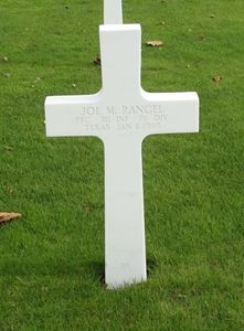 Pfc Joe M. Rangel worked for the Electric Shoe Shop of Jesse Barrera in Corpus Christi before he enlisted in Fort Sam Houston, Texas on 30 March 1944 and went overseas in September 1944.His brother Fernando B. Rangel is buried at the American Cemetery of Margraten, the Netherlands in Plot P, Row 22, Grave 13.