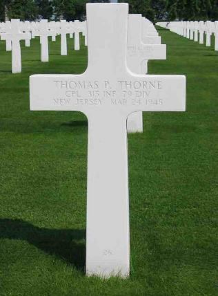 Thomas Thorne attended Rahway High School and attended Rutgers University.He enlisted on 27 May 1943.