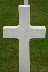 Pvt Glenn L. Belcher graduated from Patoka Community High School and was employed by the Decatur Dry Goods Company.He enlisted on 9 August 1943 and arrived in Europe on 10 November 1944.