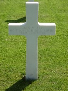 T/3 Jack Miller joined the Regular Army on 2 October 1940. He volunteered for the paratroopers on 10 December 1942 and was sent overseas in December 1943.A letter from the chaplain of an evacuation hospital to his family reads: "It is my sad duty to inform you that your son, T/3 Jack Miller, passed away in our hospital early this morning. He was thrown from a moving jeep on June 6, and brought to us in an unconscious state, from which he never recovered."
