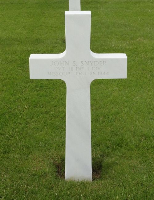 He was born in Ralls County, Missouri but lived several years in Laddonia, Missouri.Pvt John S. Snyder enlisted at Jefferson Barracks, Missouri on 3 April 1944.