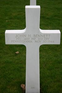 Pfc John H. Bennett was a student when he enlisted on 26 February 1943 at Camp Lee, Virginia.Source of information: Peter Schouteten, www.wwiimemorial.com, www.archives.gov, www.ancestry.com - Veteran Compensation Application File