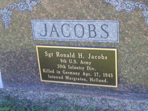 Sgt Ronald H. Jacobs is remembered at the Worthing Cemetery, Worthing, South Dakota.