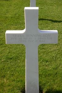 Pvt Frank Bennington enlisted in Huntington, West Virginia on 16 November 1942.Source of information: Peter Schouteten, Carla Mans, www.wwiimemorial.com, www.archives.gov - WWII Enlistment Record, www.ancestry.com - 1930/1940 Census / U.S. WWII Draft Cards Young Men