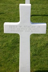 First Lieutenant Peter W. Beagan Jr. enlisted on 30 March 1942 in Milwaukee, Wisconsin.He is buried next to his brother, S/Sgt Joseph E. Beagan.