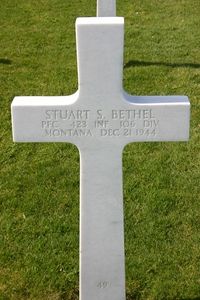Pfc Stuart S. Bethel was initially buried at the civilian cemetery of Bleialf and was disinterred on 10 March 1945. Then, he was buried at the Temporary American Military Cemetery in Foy, Belgium on 13 March 1945. He was again disinterred on 10 September 1948 and his remains were prepared and placed in a casket on 16 September 1948. He was given his final resting place in October 1948.