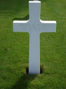 Pfc Arthur Andrews enlisted on 17 June 1943 in San Francisco, California. He joined his unit from Replacement Depot on 7 October 1944.Source of information: Peter Schouteten, Carla Mans, www.wwiimemorial.com, www.archives.gov, www.ancestry.com - OneWorldTree